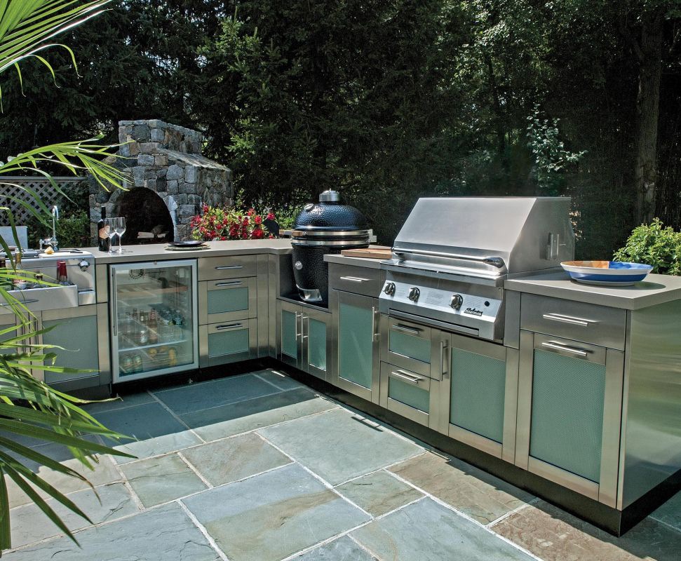 Brown Jordan and Danver cabinets can be custom configured to handle just about any outdoor appliance or accessory, including grills, smokers, sinks, bartender centers, pizza ovens, refrigerators, freezers, ice makers, trash bins have optional matching side and rear panels for standalone and island applications and inserts for the ultimate built-in!
